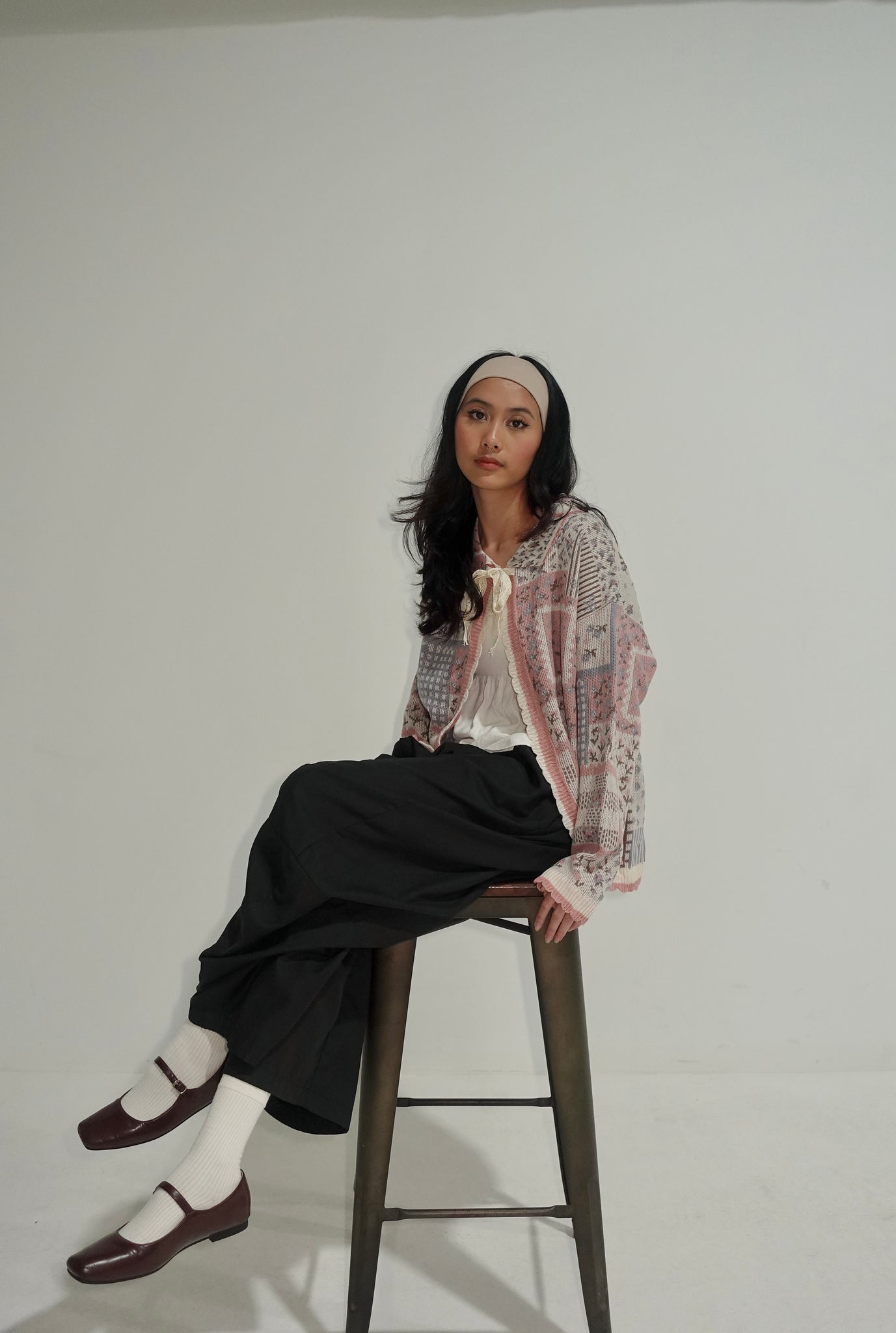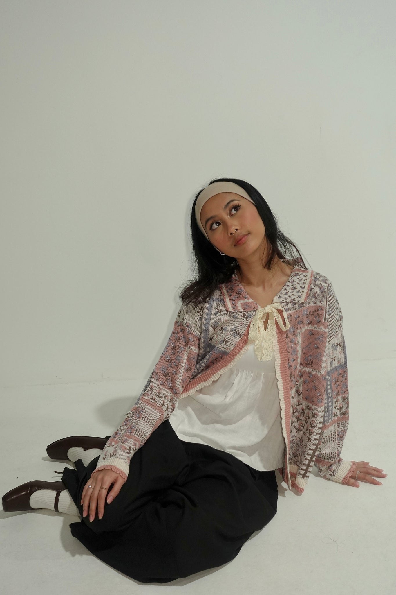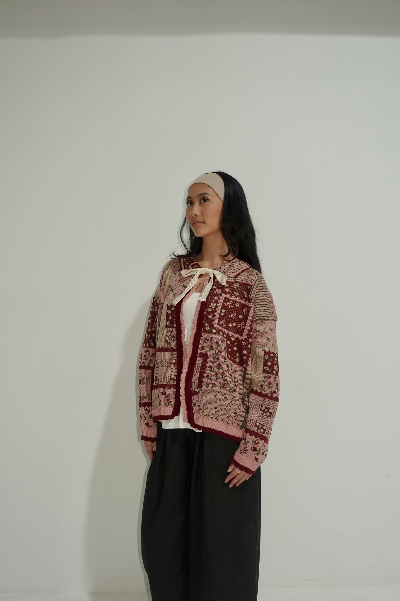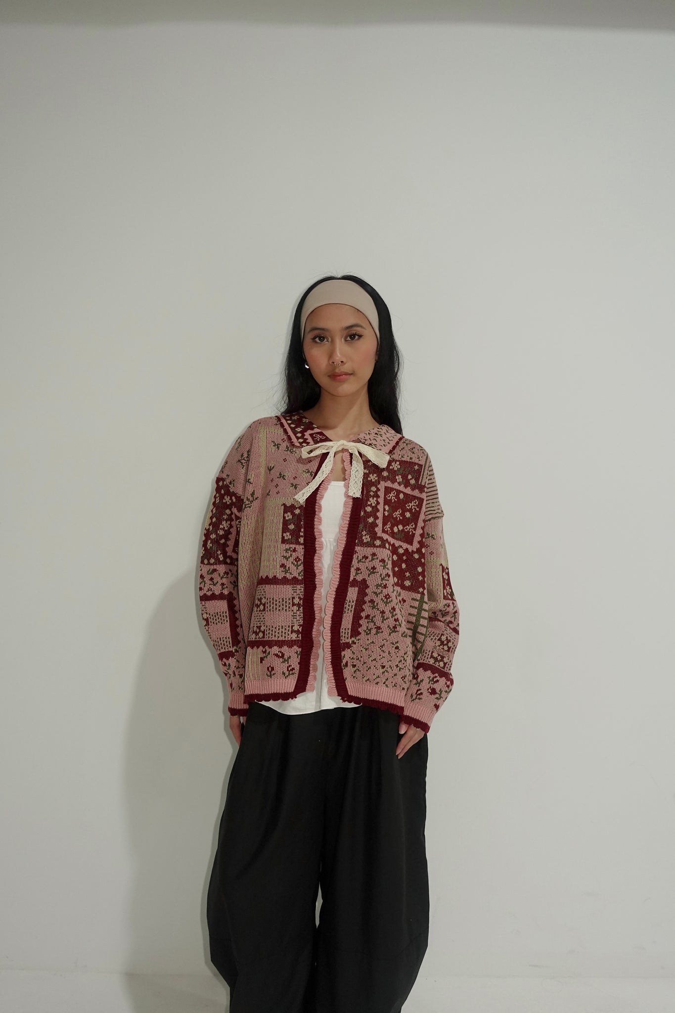 The cardigan is free size, fitting from S to L.